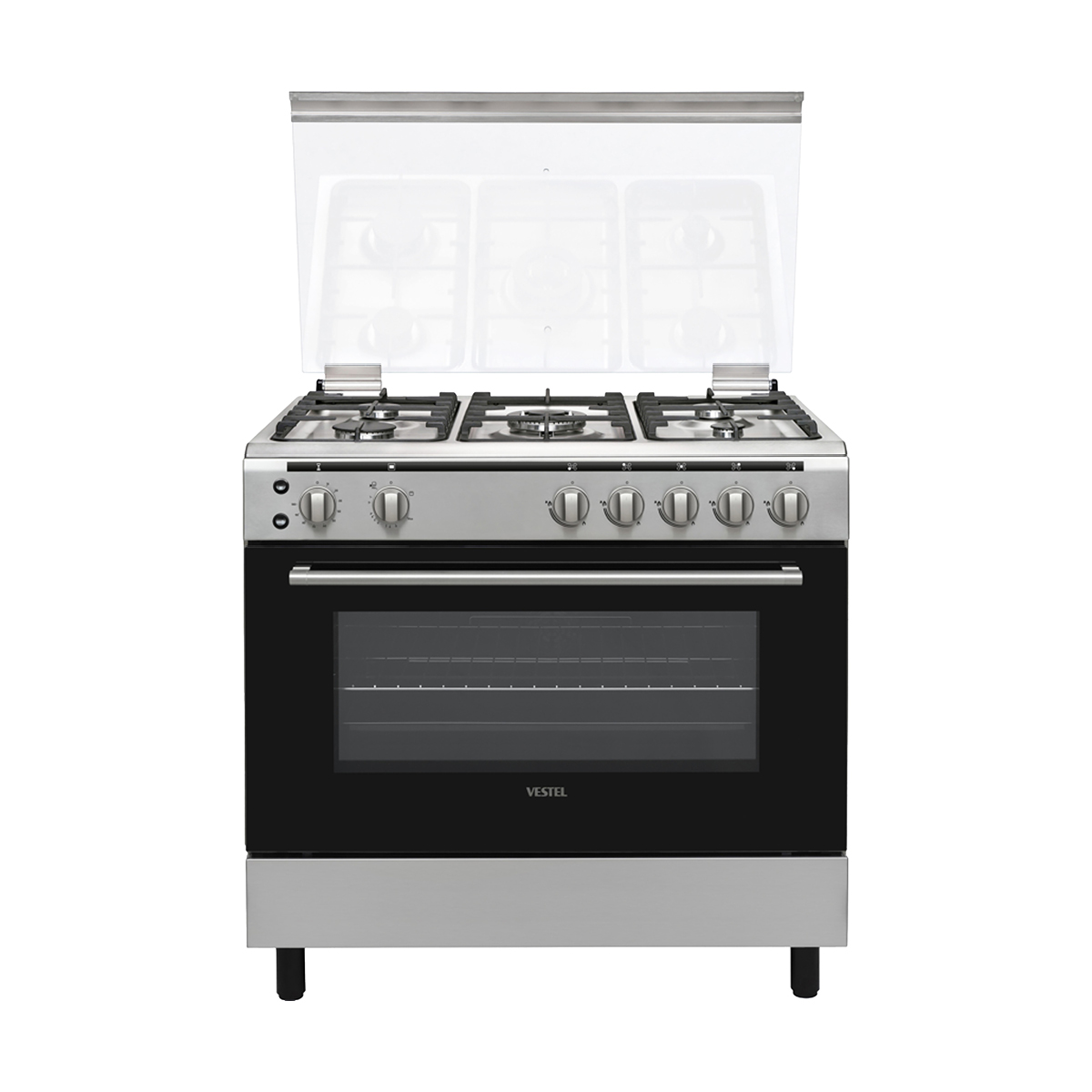Brand: VESTEL GAS COOKER - 90CM - 5 BURNERS - CAST IRON